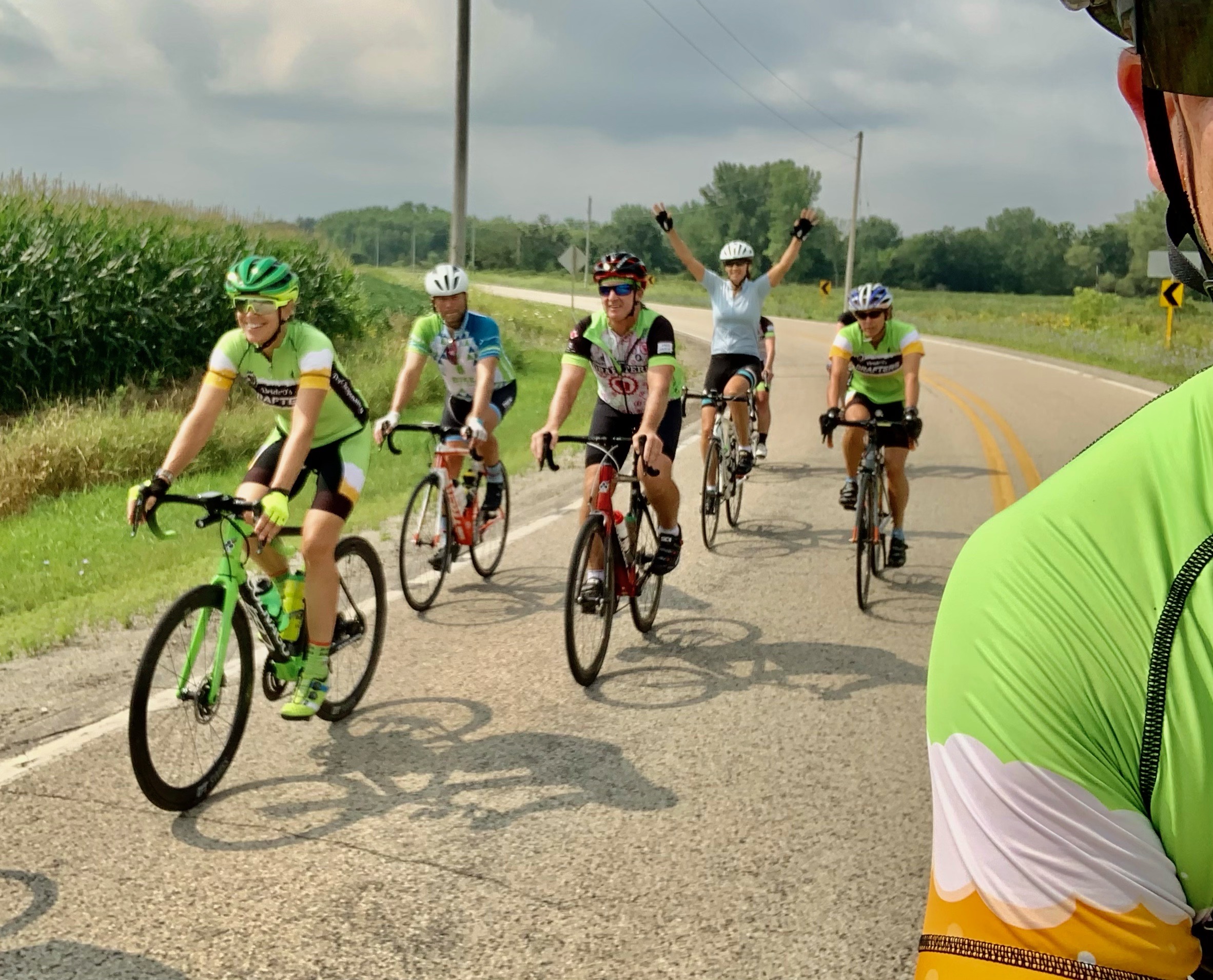 Finally, the Lake Ripley Ride for JDRF on Saturday has an extraordinary Drafter turnout. 13 “regular” Drafters plus BrickO’s aunt and cousin. Cookie Monster and Lil’ Monster joined up with the crew afterwards to enjoy Footer’s cottage and hospitality.