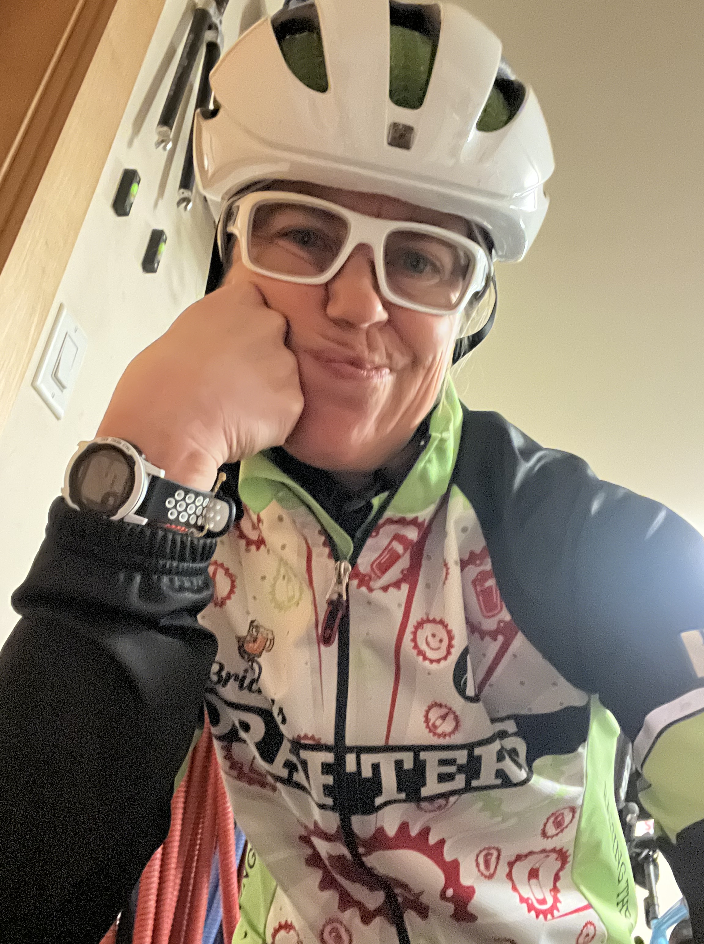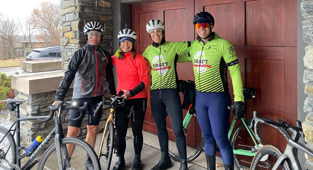 Keez and Slim came in hot (a bit late), but quickly made up for lost time by pulling the crew out Airport Rd. The weather was fickle, with temperatures dropping precipitously and the wind changing direction such that it was always working against the Draft (for real). The weather icons showed 70% chance of rain at 5PM, but Mother Nature graciously delayed that until the Drafters were warm and dry (or at least dry- some resorted to the sauna and sipping hot water to reach homeostasis). Cannibal questioned why our group doesn’t include more Mennonites (men in tights). The Drafters are working hard to increase diversity and inclusivity. Cannibal is a sensitive soul. He took it upon himself to clear Granny’s glasses of obscuring mascara, mistaking it for chain grease. Somehow Cannibal ended up with her wallet and keys during the chivalrous act. Draft responsibly.