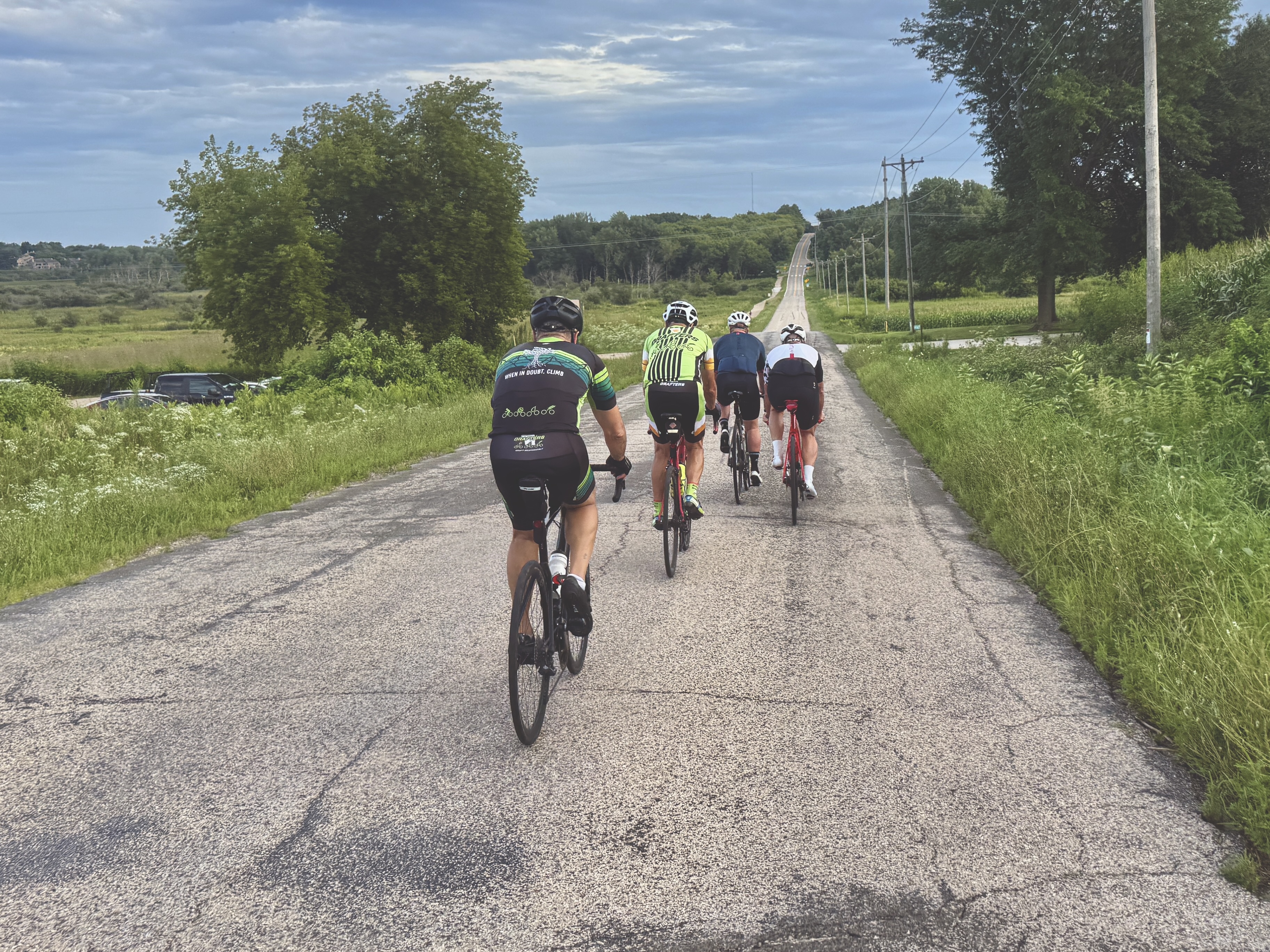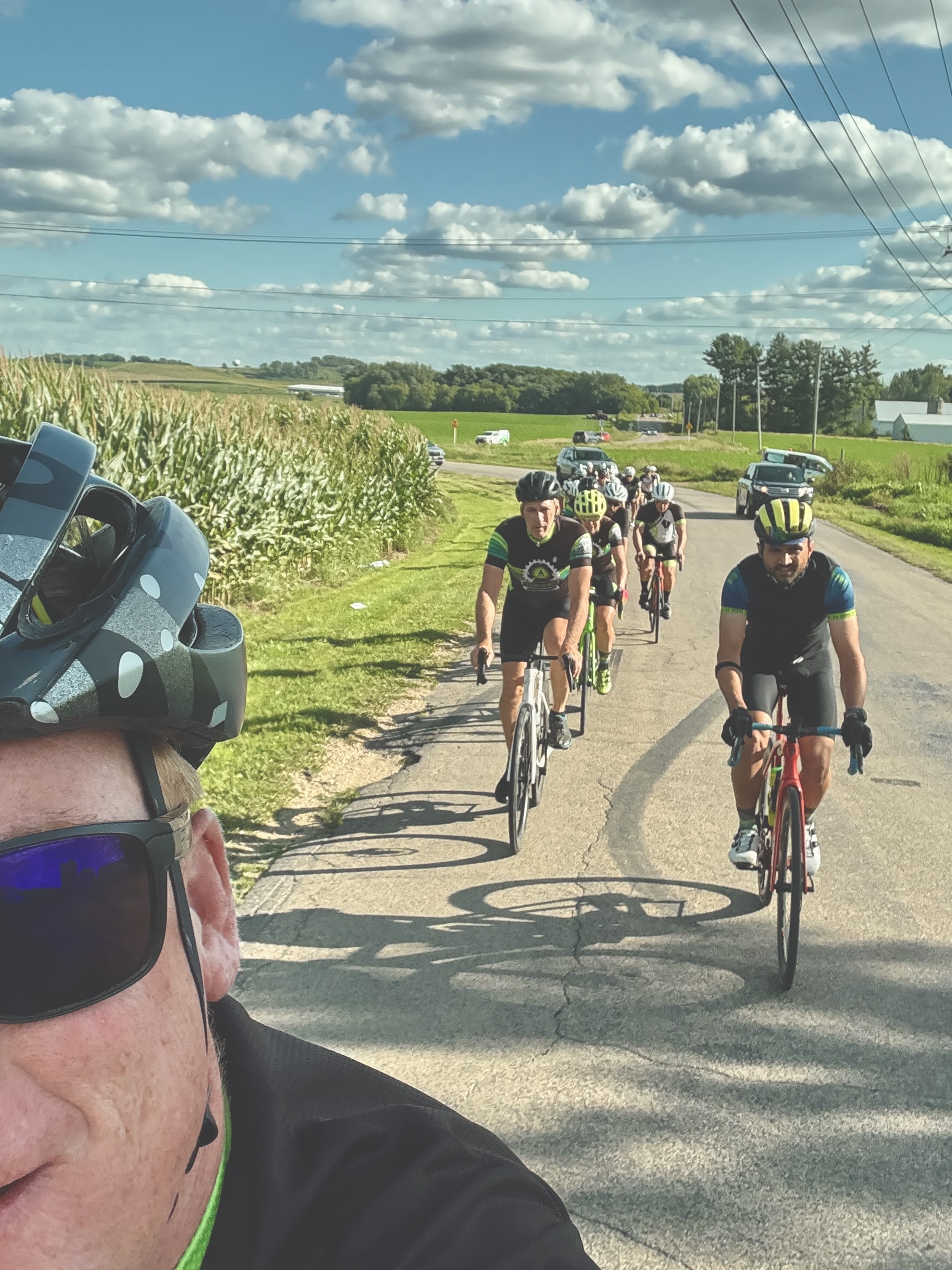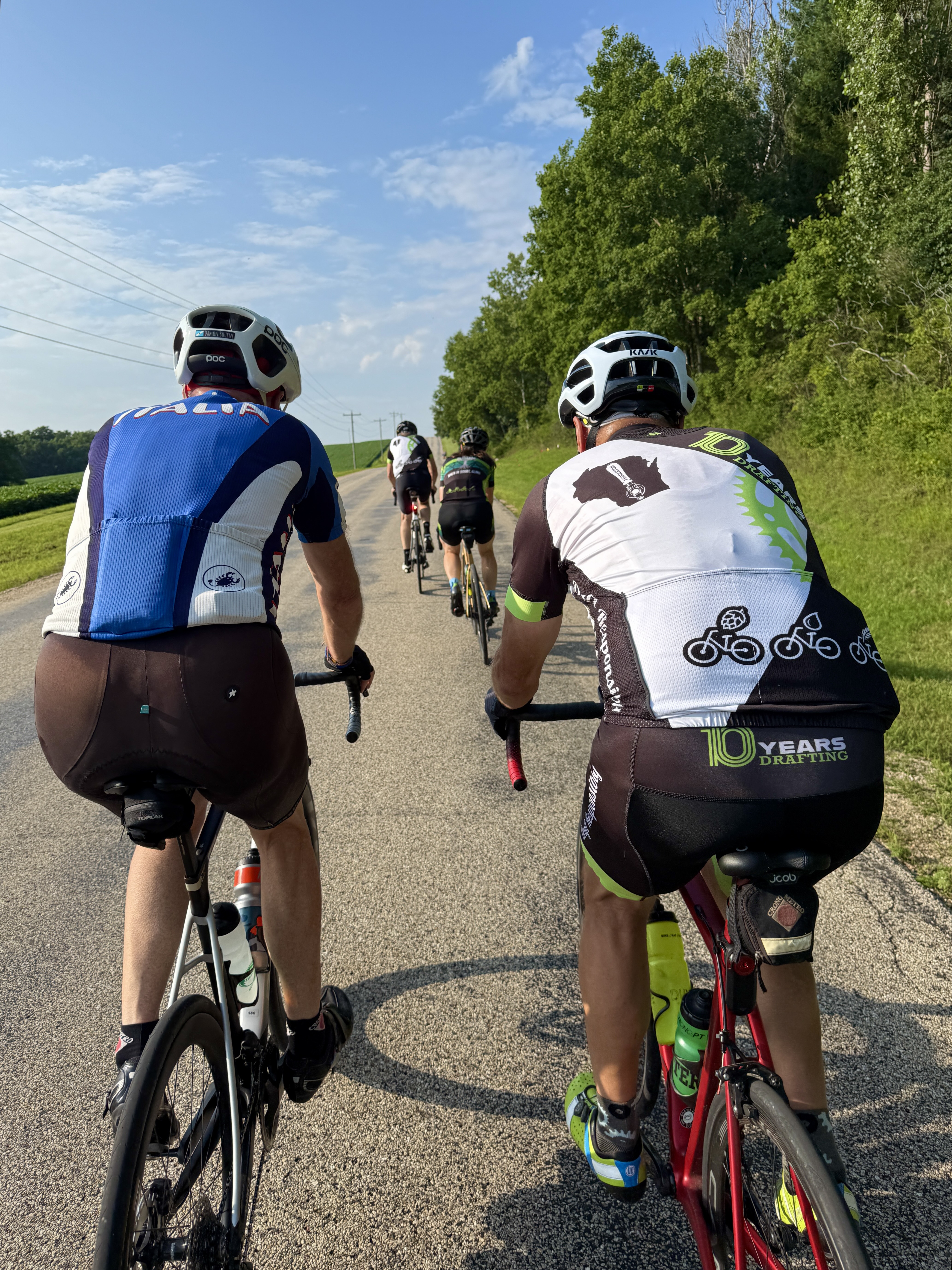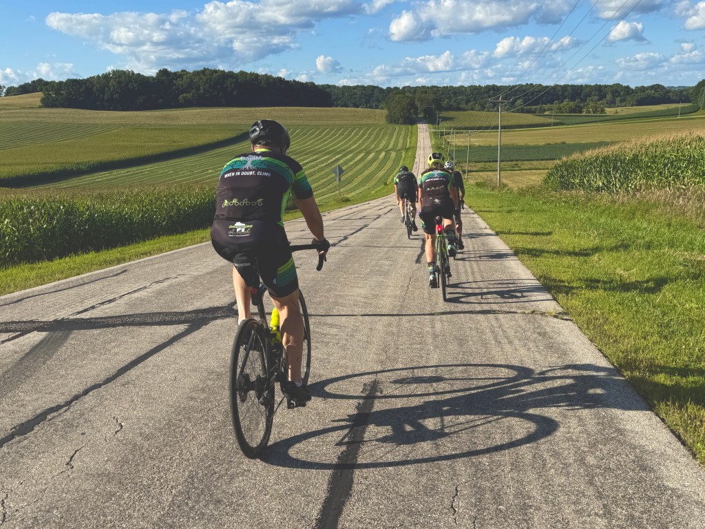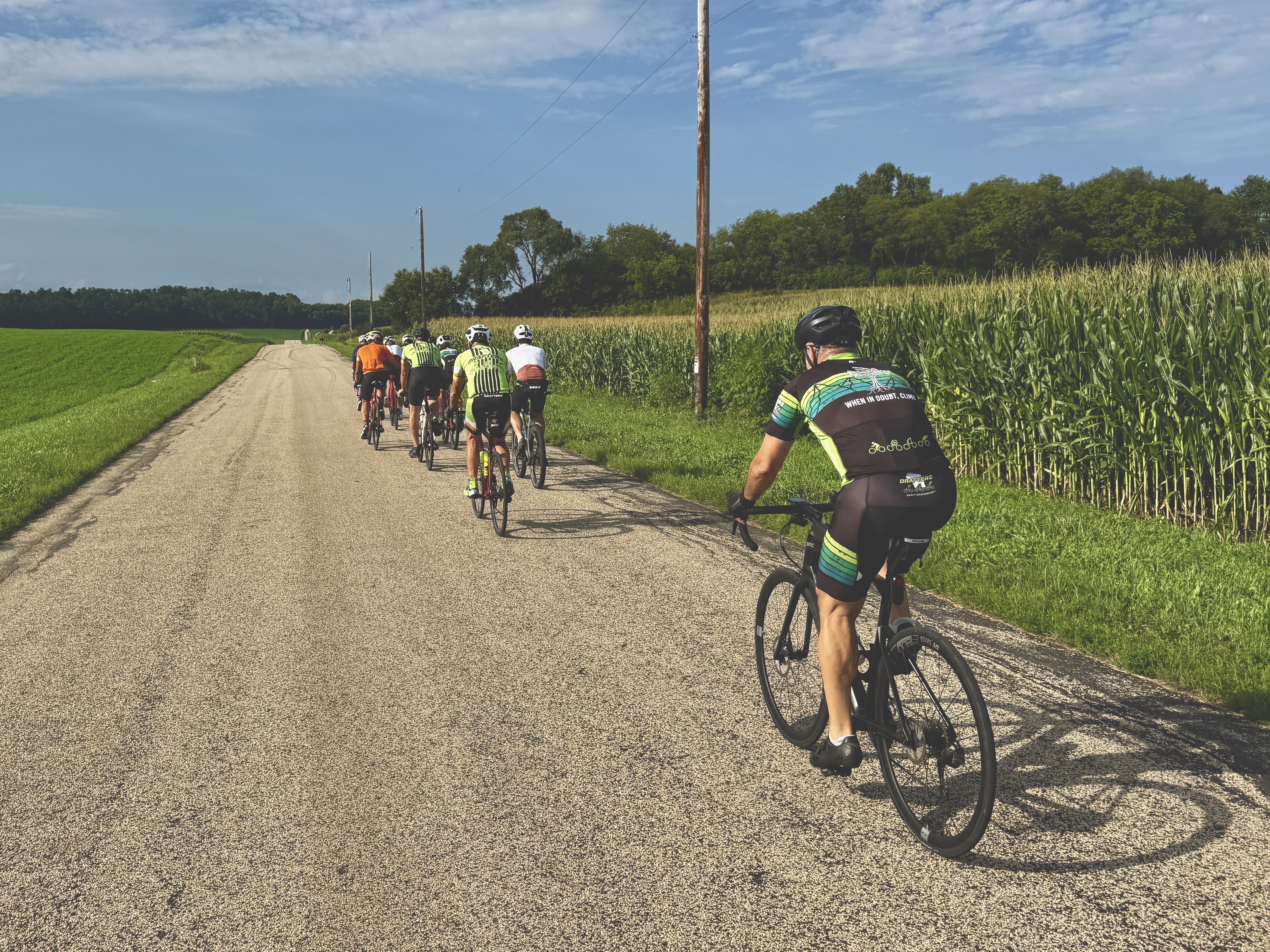 Sunday was an epic day for a finale. 17 Drafters ventured out to Ridgeway to climb some of Iowa County’s finest hills. Never too late to enlist… welcome to the Draft, Tank. He can motor on the flats and descends like a beast, but ask him how he feels about climbing. Tank wasn’t sure he wanted to enlist after learning the Drafter motto….