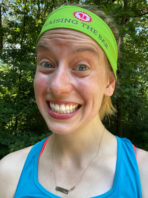 Cookie Monster redefines interval training one month postpartum. Why run-sprint when you can walk-slog? We look forward to having her back in the saddle soon.