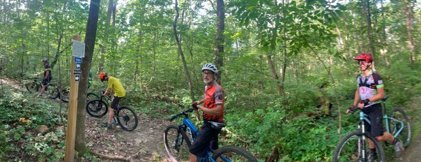 Late to the party: Vintage and Thing 1 rode the course backwards, meeting up with the A- team on Cuba Valley. Tick Tock staggered from home, while Octane gased up undetected.