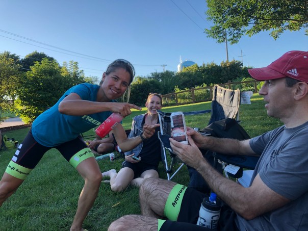 Waiting for the runners in the transition area, skaters experienced some technical difficulties. Ninja, a former competitive inline skater, failed to check her 20 plus year-old custom Bonts. The first thing to break was her skate lace. More significant equipment failures were on the horizon.
