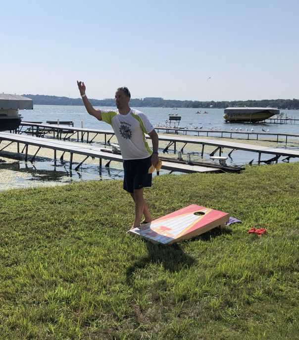 The energy to shoot baskets was a limiting factor for all Funtathletes. Bomber was quick to point out a confounding variable, “Nobody could train for this event. The gyms are closed.” With more practice, the basketball bonus round may have proved more fruitful. Duracell of Team CanAm brought the most game to the basketball bonus round. Kermit brought the most style.