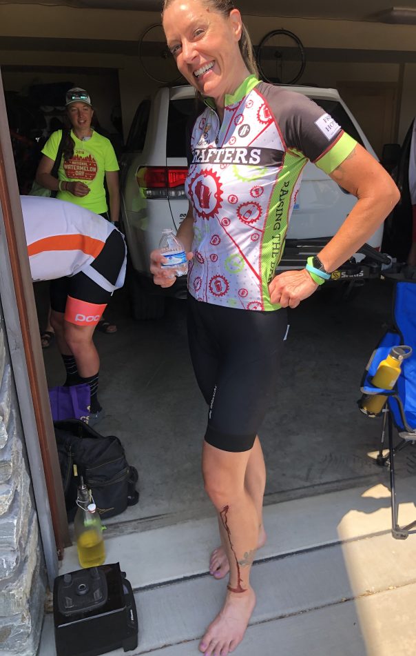 The 4:43 group went off with a bit of a glitch. Pipes missed the B Team start, as she was checking on the well being of her Funtathalon teammate, Special K, and lost track of Drafter time. The accomplishment of running 100 miles (with a calf injury sustained walking her bike up Barlow the previous week) while being sworn in to the State Supreme Court is impressive. But the real challenge is yet to come…