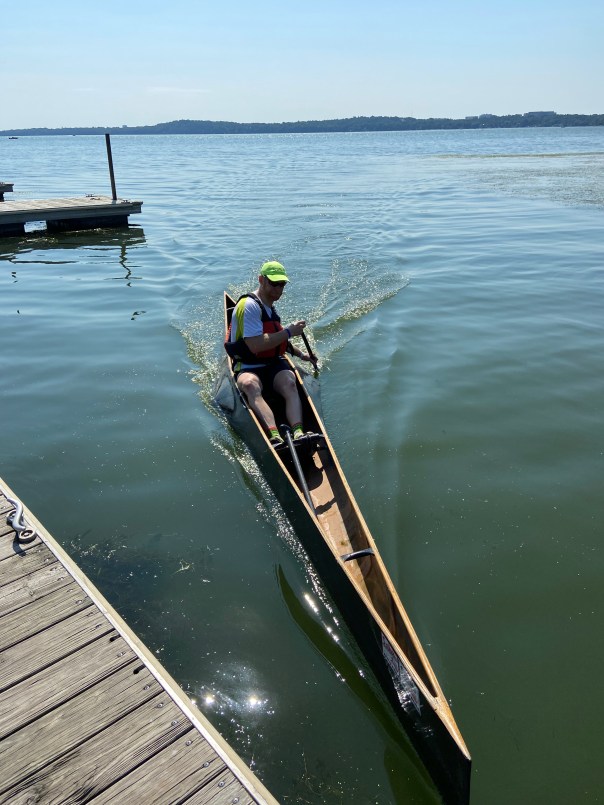 The A team also traveled light to start. Captain Joe took the staggered start seriuosly, soloing at noon.