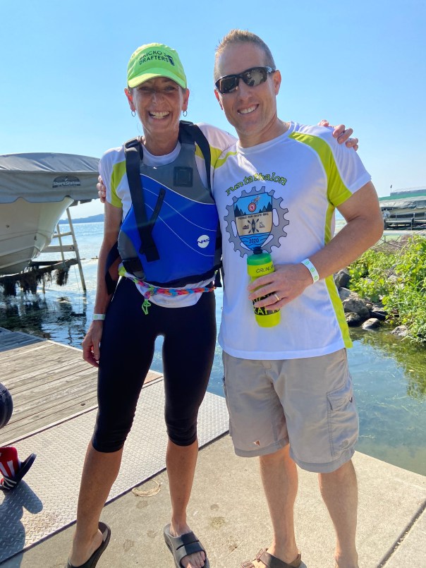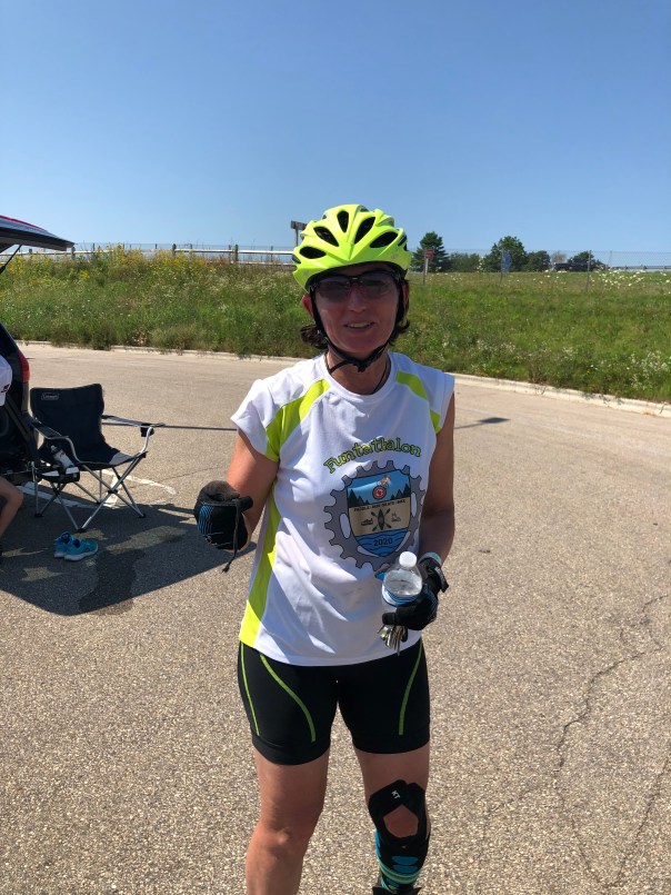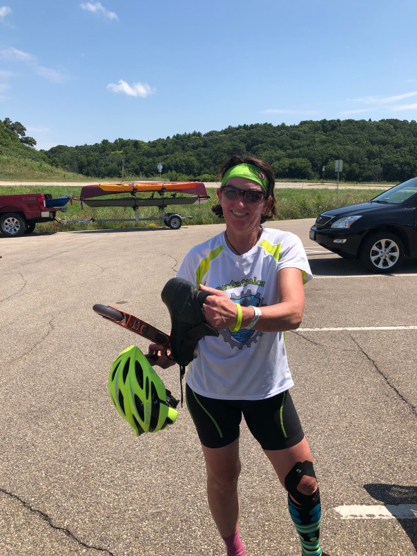 Loose Screw, after generously providing several Funtathletes with water crafts and loading them back onto his trailer, was left at the boat launch transition area without truck keys. Billy Boy, honorably executing his bike course sweeping duties, inadvertently left the launch with his leaf blower and Loose Screw’s keys. This delayed Loose Screw’s arrival at the Park and Ride transition area, and his subsequent departure on the skate leg.