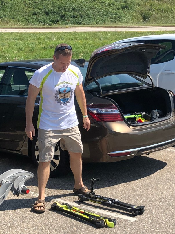 The transition from skating to cycling was thankfully uneventful. FishNBoots was the last skater into transition. Footer of Team LRST 2.0, left before her brother-in-law arrived. “I’ve spent most of my life waiting for him.” She had to wait a little longer, as Footer required some assistance driving LRST 2.0 teammate’s Audi to the finish. “How do you start this thing?” Despite the heroic efforts at the whiskey bonus station, Team Divockuf did not make the time cut off, and had to forego the cycling event.