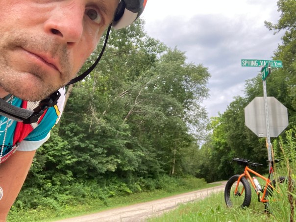 Pipes was late to the party, a sort of ground hog day for the Spring Valley loop. Recall her 2019 attempt at catching the group after a late start… instead she caught the broad side of a deer, got disortented and lost, ran out of gas, and called for a ride home. Definitely a stronger finish in 2020.