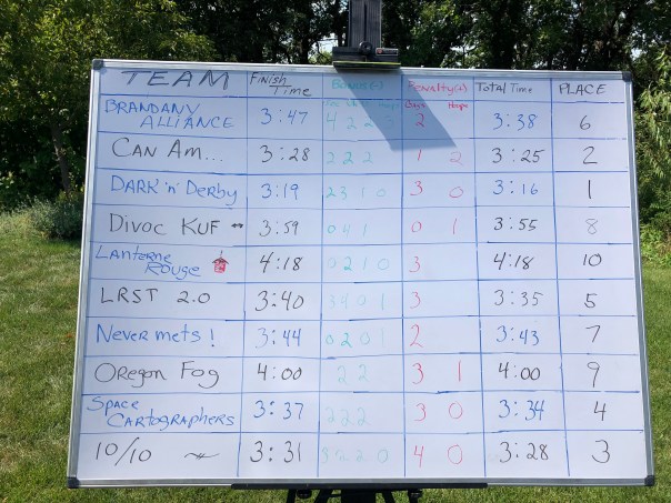 The transition from skating to cycling was thankfully uneventful. FishNBoots was the last skater into transition. Footer of Team LRST 2.0, left before her brother-in-law arrived. “I’ve spent most of my life waiting for him.” She had to wait a little longer, as Footer required some assistance driving LRST 2.0 teammate’s Audi to the finish. “How do you start this thing?” Despite the heroic efforts at the whiskey bonus station, Team Divockuf did not make the time cut off, and had to forego the cycling event.