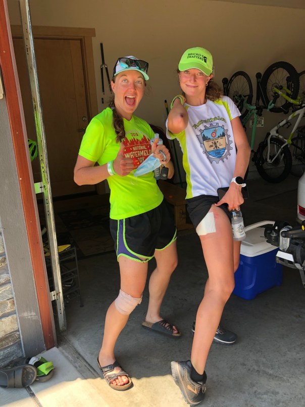 The 4:43 group went off with a bit of a glitch. Pipes missed the B Team start, as she was checking on the well being of her Funtathalon teammate, Special K, and lost track of Drafter time. The accomplishment of running 100 miles (with a calf injury sustained walking her bike up Barlow the previous week) while being sworn in to the State Supreme Court is impressive. But the real challenge is yet to come…