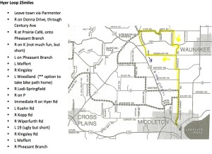 The route was pretty straightforward, or so I thought. Tough Girl ignored the GPS coordinates and posted map, ending up in Waunakee. What is that saying about the road less traveled (by someone wearing his wife’s bike shorts- or is that a different literary work)? When accused of getting lost, Tough Girl retorted, “I wasn’t lost. I live in Waunakee and knew exactly where I was. I just didn’t know the bike route.”
