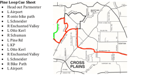 The ride for Monday April 22 will require more Brawn than Brains. We will venture west towards Cross Plains. The construction through town has been completed, so there will be no need for Dan-yelly to repeat her off road adventure through the yards of these fine townspeople. There are a few respectable climbs up Braun and Old Sauk Pass, but I don’t think you will need a dinner plate- yet.